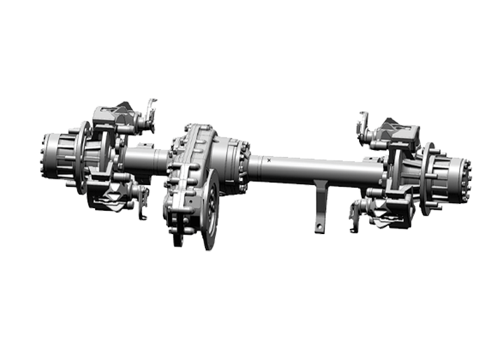 主減速機(jī)構(gòu)采用二級減速器,減速比達(dá)18.37,驅(qū)動橋輸出扭矩8300N.m;